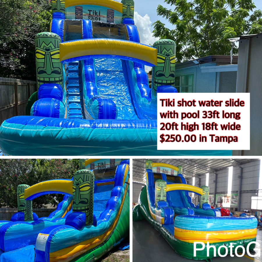 Looking for the ultimate water slide experience for your next event in Tampa, Wesley Chapel, Lutz, and surrounding areas? Look no further than our 33x20x18 ft Tiki Shot Water Slide with Pool! This incredible water slide is guaranteed to provide hours of fun and excitement for kids and adults alike.