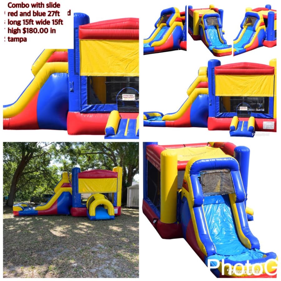 🏡 This 27x15x15 Combo with Slide is available for delivery in Tampa, Wesley Chapel, Lutz, Land O Lakes, New Port Richey, Hudson, Holiday, Dunedin, Palm Harbor, Odessa, Oldsmar, Brandon, Valrico, Lithia, Dover, Riverview, Thonotosassa, Largo, Clearwater, St Pete, Pinellas, Seminole, and surrounding areas. We strive to bring the joy of this inflatable combo unit to as many families as possible, making your party planning process hassle-free.