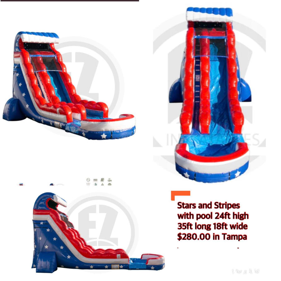 Don't miss out on the opportunity to create unforgettable memories with our 35x24x18 ft Stars and Stripes with Pool bounce house. Book now and let the fun begin!