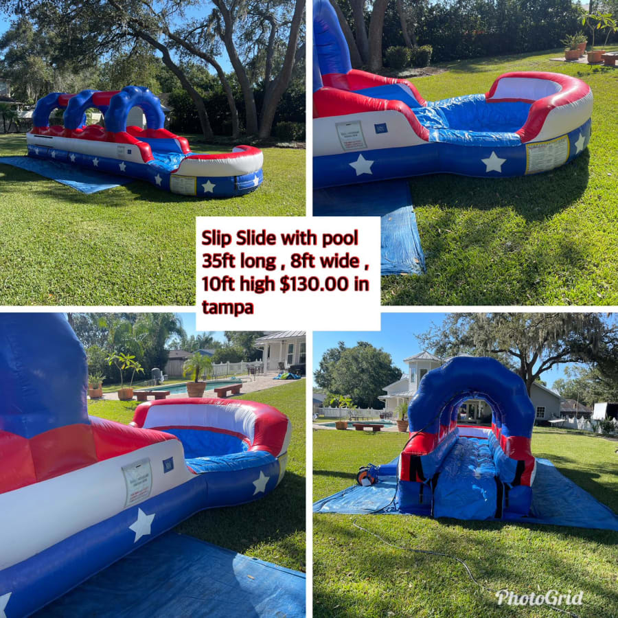🚚 We offer delivery to various areas including Tampa, Wesley Chapel, Lutz, Land O Lakes, New Port Richey, Hudson, Holiday, Dunedin, Palm Harbor, Odessa, Oldsmar, Brandon, Valrico, Lithia, Dover, Riverview, Thonotosassa, Largo, Clearwater, St Pete, Pinellas, and Seminole. So no matter where you are located, you can enjoy the thrill of our slip slide with pool!